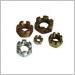 開槽螺母的作用就是通過緊固穿過前后輪輪軸螺桿固定車輛前后輪軸,使車架和輪胎固定在一起,為了防止螺母松脫,必須用開口銷通過開槽螺母的槽進行固定,而開口銷要固定住開槽螺母就必須從輪軸螺桿中間穿過,通常輪軸螺桿