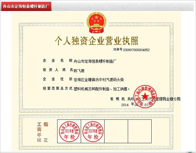 舟山市定海恒泰螺桿制造廠