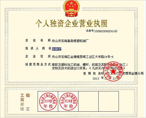 舟山市定海嘉鼎橡塑機(jī)械廠