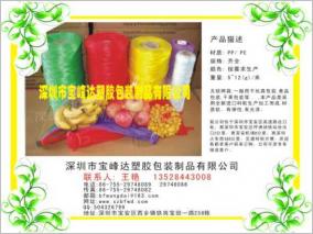 深圳市寶峰達塑膠包裝制品有限公司,專業生產各種擠出塑料網袋,一般原材料為:PP / PE / PO/EVA,生產范圍:10目~280目網孔,寬度:5cm~300cm。主要產品:玩具網袋,工藝品網袋,化妝品網袋,水果網袋,香皂網袋,雙層網袋,過濾網袋,樟腦球網袋,環保網袋,包裝網袋,蒜頭網袋,干果網袋,農產品網袋,洗面泡泡網袋,購物網袋,沐浴花,沐浴巾,公仔沐浴球。網扣:(大,中,小號)。