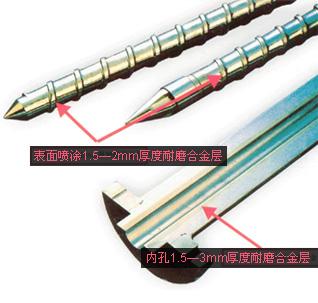 雙金屬工藝是今年來較常用的一種硬度高、耐磨性好的工藝組合產(chǎn)品,它的性能超過普通材料的三倍。 在機(jī)筒螺桿的應(yīng)用上,可以克服易損、易腐蝕等缺點(diǎn),在生產(chǎn)特殊塑料制品的過程中,必須采用雙金屬螺桿機(jī)筒。 它的加工方法有點(diǎn)噴、噴涂、包覆、澆鑄、焊補(bǔ)等。