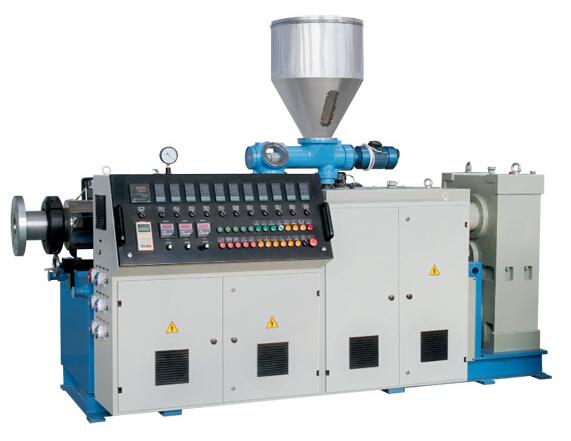 錐形雙螺桿擠出機是一種適合于各類PVC粉料擠出成形的專用設備。配備不同模具及輔機可以生產各類PVC塑料管材、異型材、板材、片材、棒材及造粒。